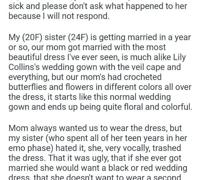 my sister wear my mom’s wedding dress
