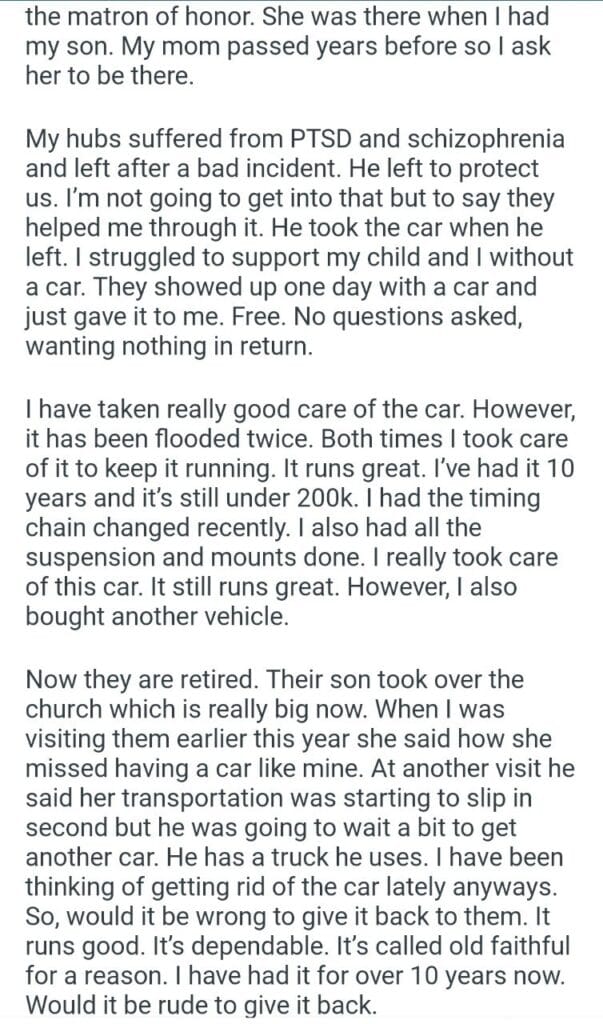 a car someone gave me Related Posts my dad and his wife’s my specific still being friends with someone my BF’s best friend a facility director drive my girlfriend my bf because his dad my ex-best friend with my partner even though leave my husband my mom and sister my friend’s car my sister the wedding dress My former best friend wedding my in laws to move