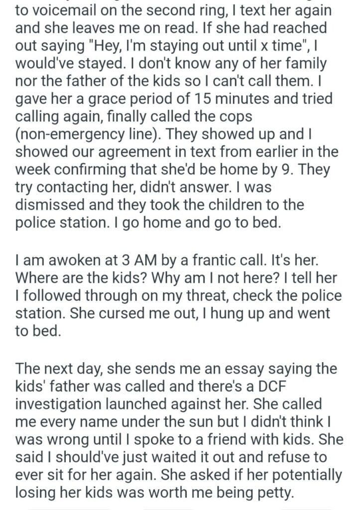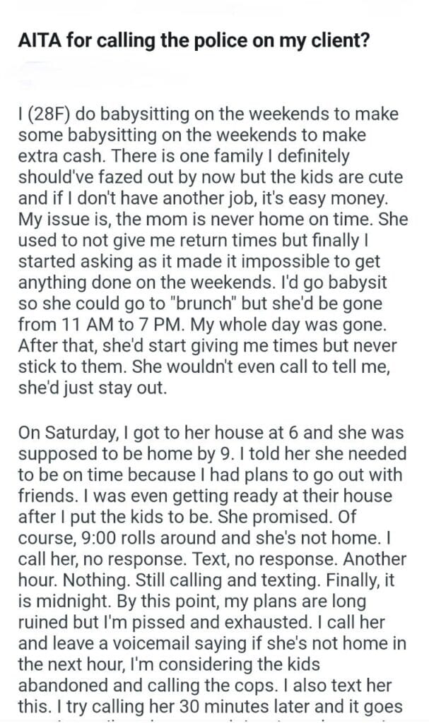 AITA for calling the police Related Posts my dog’s puppies’ vet bills a child with my girlfriend my friend stay in my second property my parents marriage by finding my bio father Because I’m the woman AITAH for telling my BIL that helping I didn’t AITA for demanding my colleagues my GF’s phone AITAH for telling my SIL daughter lives for free with us AITA for changing the wedding venue my fiancé her parent can’t live with us my husband’s friend to stay in our house picking her up at the airport at 3AM
