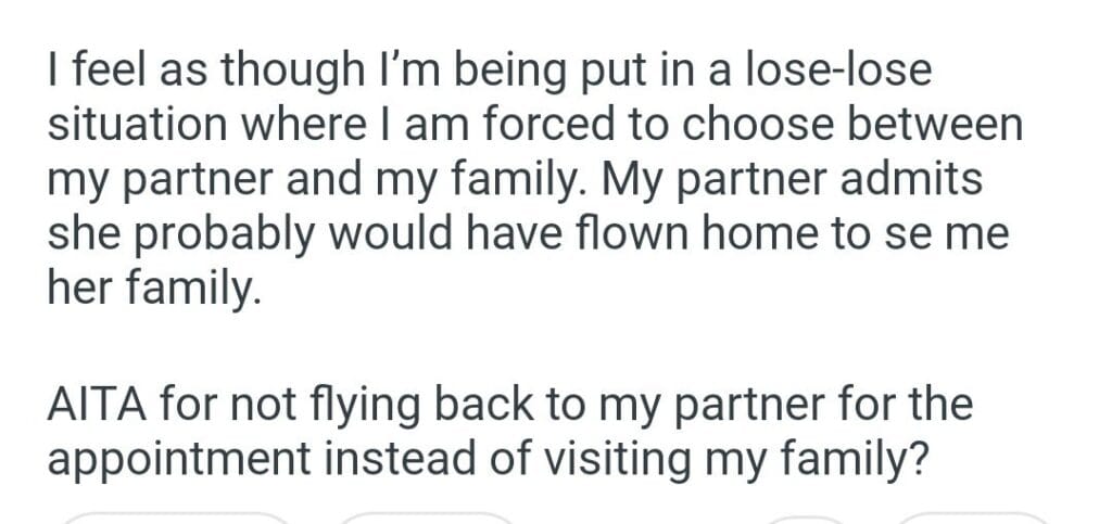 AITA for flying home Related Posts my dog’s puppies’ vet bills a child with my girlfriend my friend stay in my second property my parents marriage by finding my bio father Because I’m the woman AITAH for telling my BIL that helping I didn’t AITA for demanding my colleagues my GF’s phone AITAH for telling my SIL daughter lives for free with us AITA for changing the wedding venue my fiancé her parent can’t live with us my husband’s friend to stay in our house picking her up at the airport at 3AM