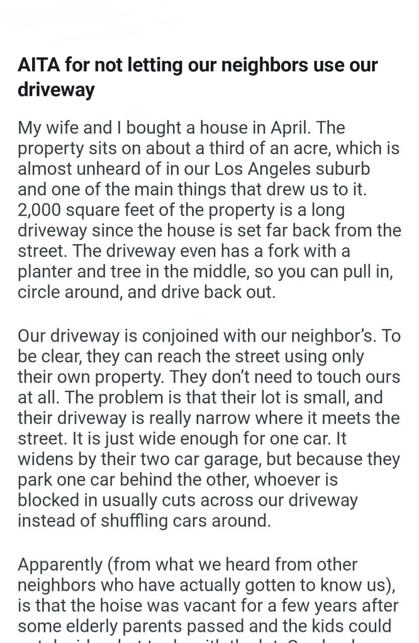 AITA for my professor review Related Posts our neighbors use our driveway My wife said something my ex (19F) and now I (19M) my partner everyday my GFs worldview my father’s stepkids AITA for telling my mil Aita for scheduling my fiancé told me “this is it, take it or leave it. for disinviting a coworker my manager couldn’t handle the plans we made in October our Halloween to stay as we’d originally planned answering my door our children’s lives