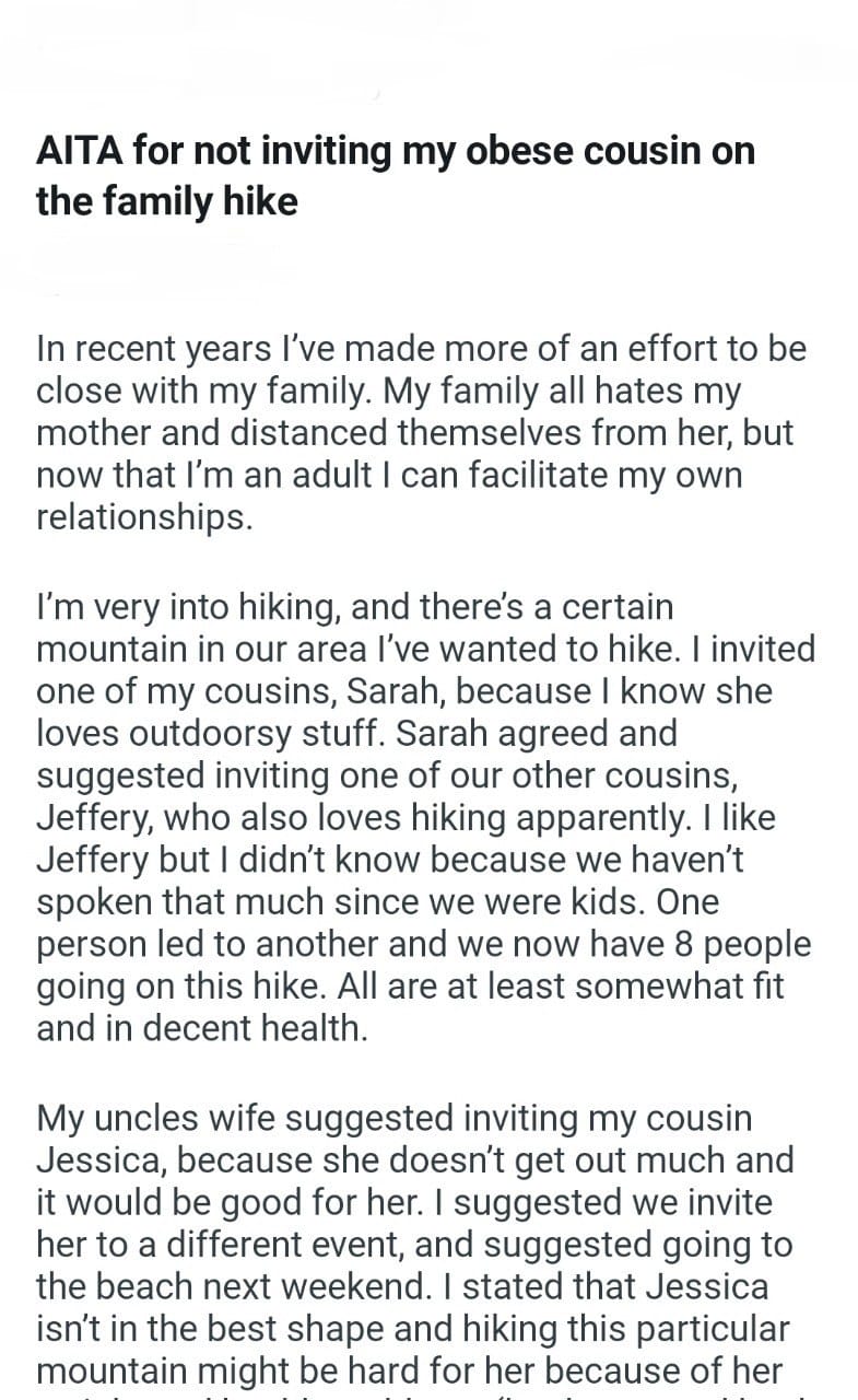 AITA for My Sister to Borrow MY Car Related Posts cousin on the family hike my mom’s boyfriend and his daughter my MIL the water my baby middle name 10 days before the wedding Mil’s at my wedding AITA: Named my son my step-son’s college fund on a hike the concert ticket I bought my friend AITA for telling my future sister in law Thanksgiving Halloween or Christmas this year for getting a dog my workout routine Boyfriend doesn’t want to propose