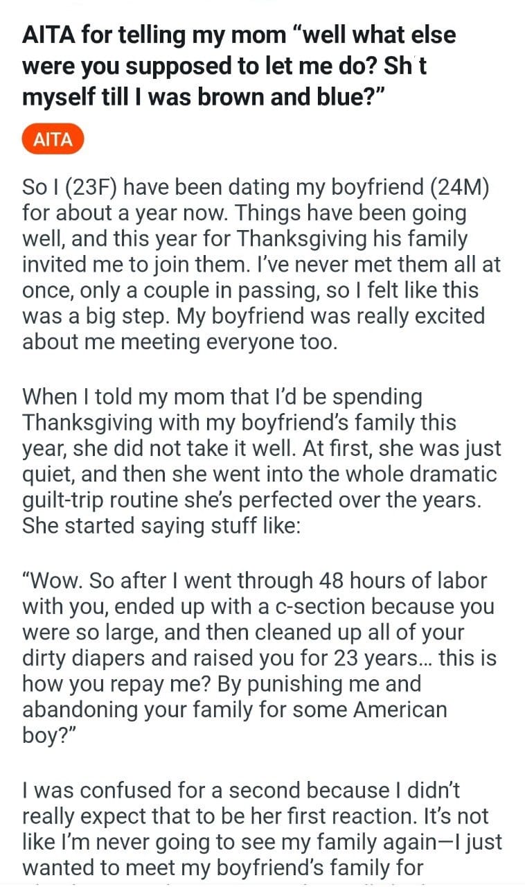 AITA for telling a child Related Posts for wanting a test meal at a restaurant my friend in front my bachelorette party quitting” my marriage AITA for telling my mom my gf job for apparently being my dads wedding the “family-friendly” wedding my husband was home her husband isn’t my mom’s friend AITA Roomate decided my half and step siblings