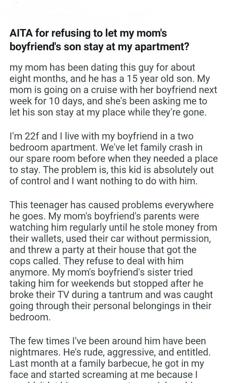 AITA for telling my father to get over the vase Related Posts my mom’s boyfriend’s son my mom cooking friend to go hiking with me cousin on the family hike my mom’s boyfriend and his daughter my MIL the water my baby middle name 10 days before the wedding Mil’s at my wedding AITA: Named my son my step-son’s college fund on a hike the concert ticket I bought my friend AITA for telling my future sister in law Thanksgiving Halloween or Christmas this year