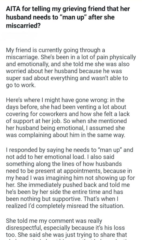 AITA for telling my friend that her husband needs Related Posts my dog’s puppies’ vet bills a child with my girlfriend my friend stay in my second property my parents marriage by finding my bio father Because I’m the woman AITAH for telling my BIL that helping I didn’t AITA for demanding my colleagues my GF’s phone AITAH for telling my SIL daughter lives for free with us AITA for changing the wedding venue my fiancé her parent can’t live with us my husband’s friend to stay in our house picking her up at the airport at 3AM