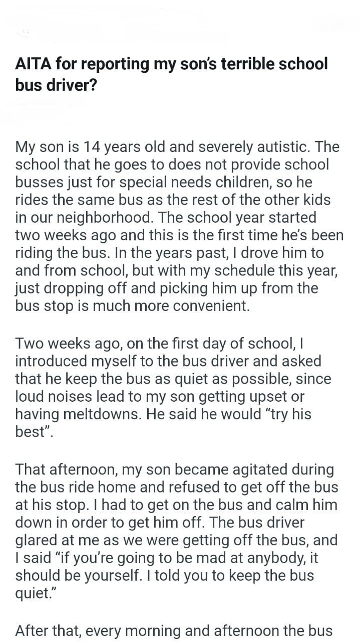AITA for telling my husband his gift for his son Related Posts bus driver my child telling my mother in law when they said my classic carĀ my wife’s behavior a ride tip-out my wedding guest listĀ babysitting for my parents show up on time my girlfriend my MIL after go to my sister’s wedding after 5yrs