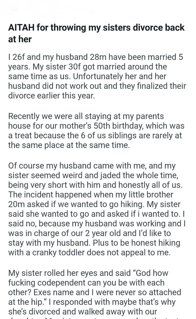 AITA for telling my neighbour to get over it Related Posts my sisters divorce clean your room my husband friendship my boyfriend’s cat police on my neighbours my in-laws (and their kids) my parents (46M, 45F) for my bday Should I (25f) wanting to be for her university If I choose hers and her husband’s room for my sister’s wedding Husband(M36)
