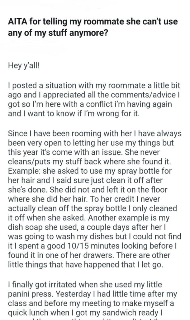 AITA for telling my roommate Related Posts my girlfriend’s birthday AITAH for telling my wife why my gf for having AITA for saying my wife my childcare job I told my friend why for how I handled AITAH for asking MIL AITA for wanting to divorce my husband for responding to a SIL’s my husbands birthday weekend my fiancée tattoo with my sister my(m29) girl friend (f28) my husband’s newly