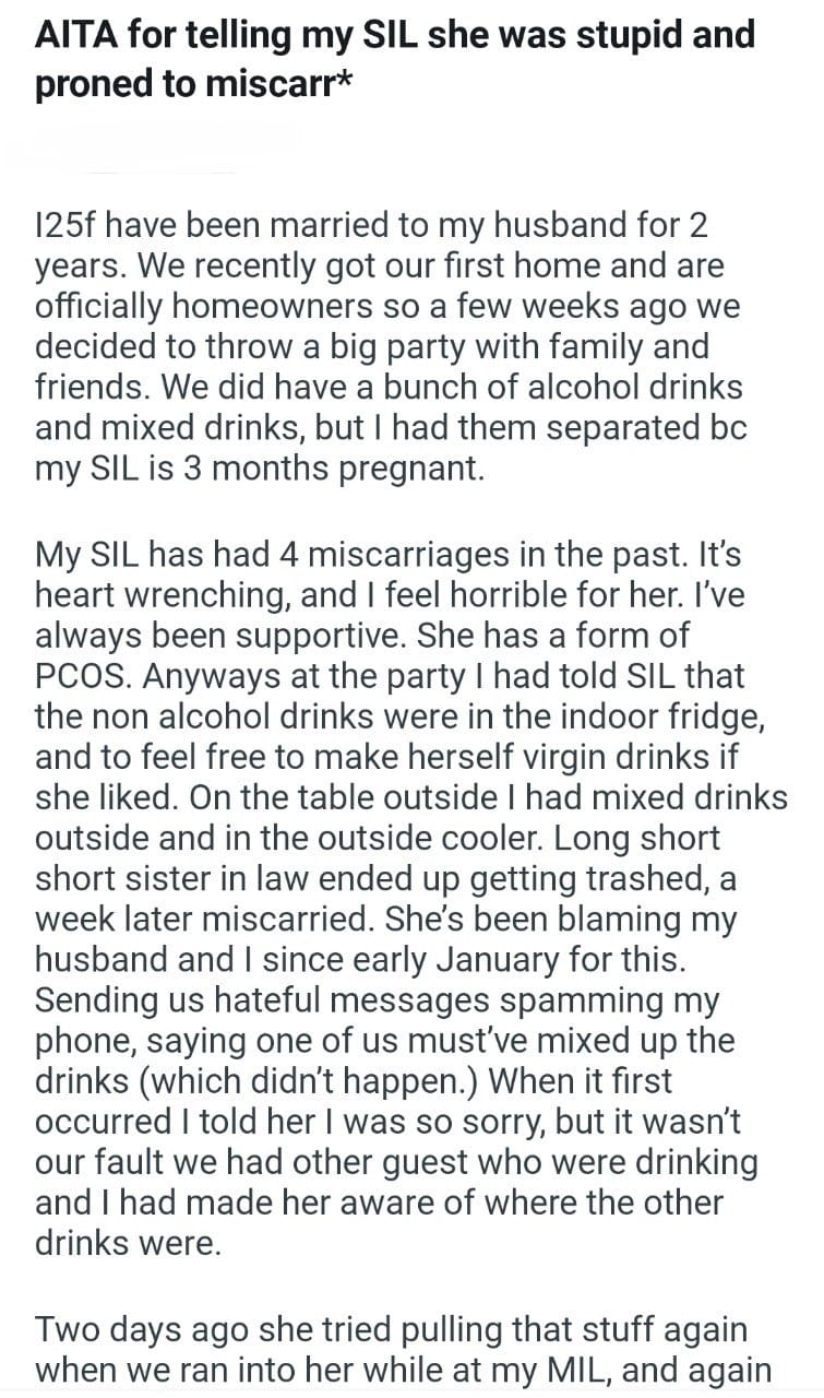 AITA for telling my SIL she was Related Posts AITAH for telling my BIL that helping I didn’t AITA for demanding my colleagues my GF’s phone AITAH for telling my SIL daughter lives for free with us AITA for changing the wedding venue my fiancé her parent can’t live with us my husband’s friend to stay in our house picking her up at the airport at 3AM my bf over Mariokart what my neighbor did my Dad and his wife after they refused my girlfriends wigs my GF did and asking for space