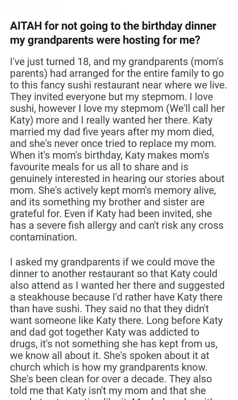 AITA for telling my son Related Posts my wife (30F) birthday dinner my grandparents My GFs friend (25F) me and her stepdaughter his inheritance to his mom Told my neighbor with my soon to be wife leaving my husband after pregnancy prank My Husband To have Access for sitting during Thanksgiving dinner telling my exes mother the meal I made our anniversary trip her friend’s kids to Thanksgiving dinner