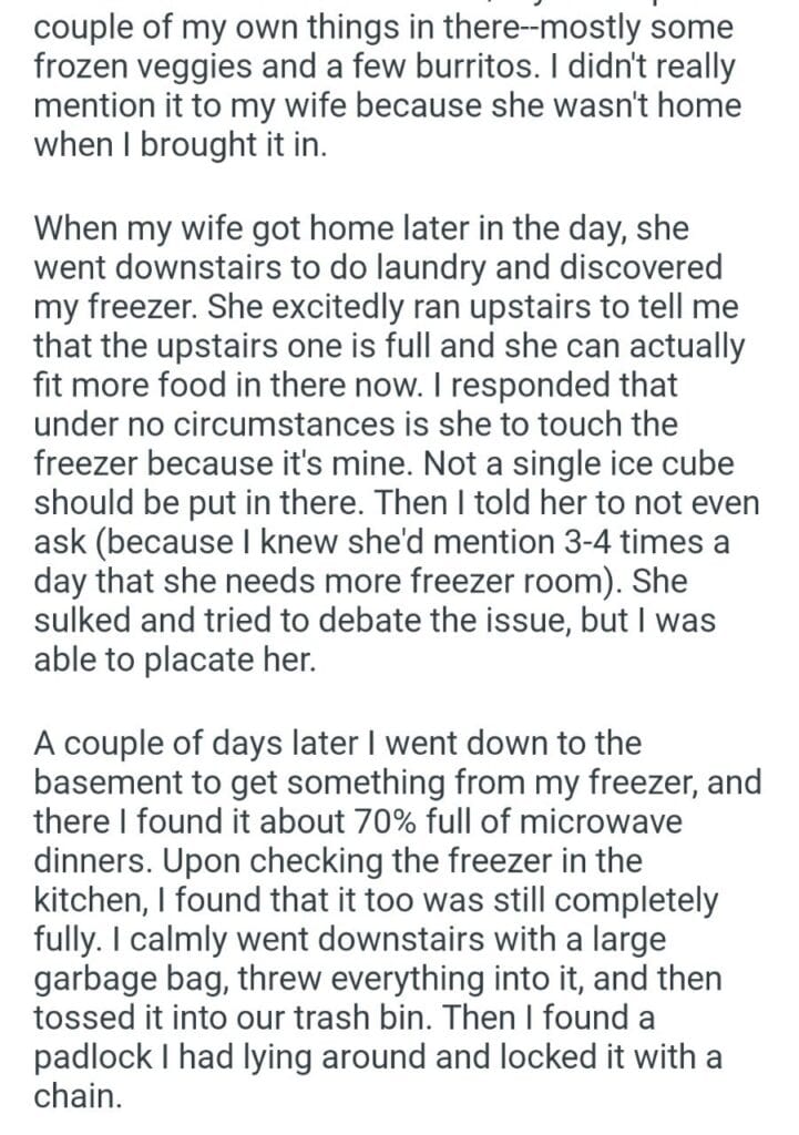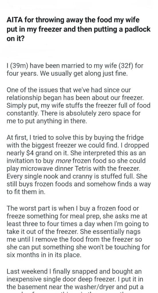 AITA for the food my wife put in my freezer Related Posts my choices for my wedding my parent 5k 10x more my (25M) boyfriend about my driving telling my fiance if he from my Sisters in laws my friends toddler my dad’s Christmas party multiple times with my Daughter My boyfriend 22M my mom and her husband for all my nephew and nieces my ex-wife’s child