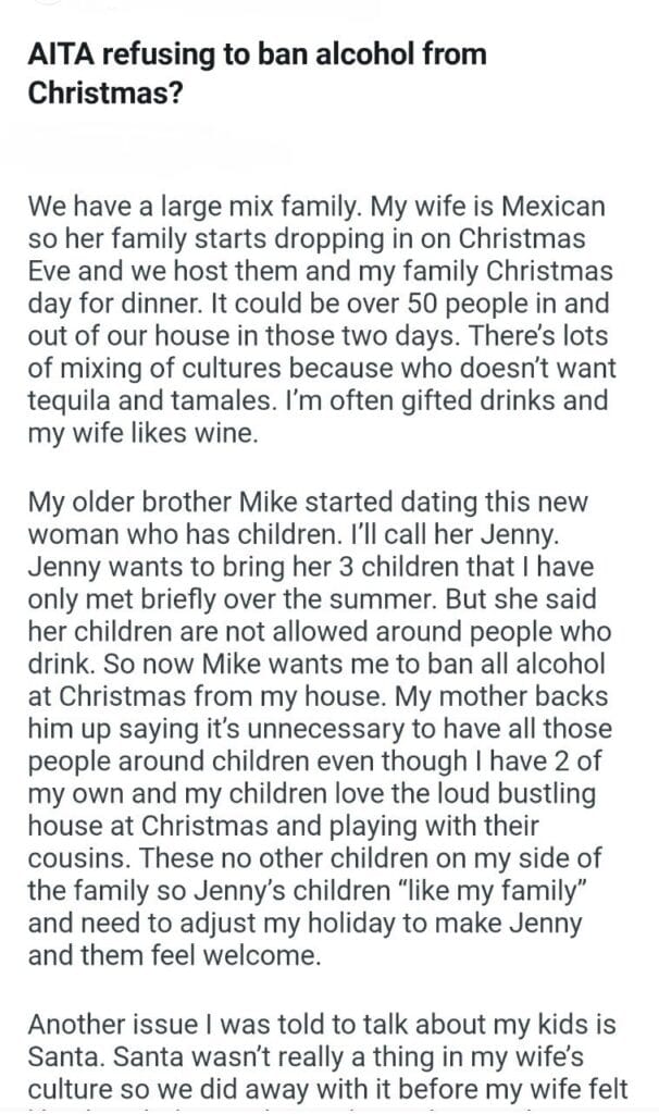 AITA from Christmas? Related Posts Christmas Day visits us from her wedding my ex wife car My (30M) best man (31M) our nursery to our christmas dinner seeing my nephew my choices for my wedding my parent 5k 10x more my (25M) boyfriend about my driving telling my fiance if he from my Sisters in laws my friends toddler