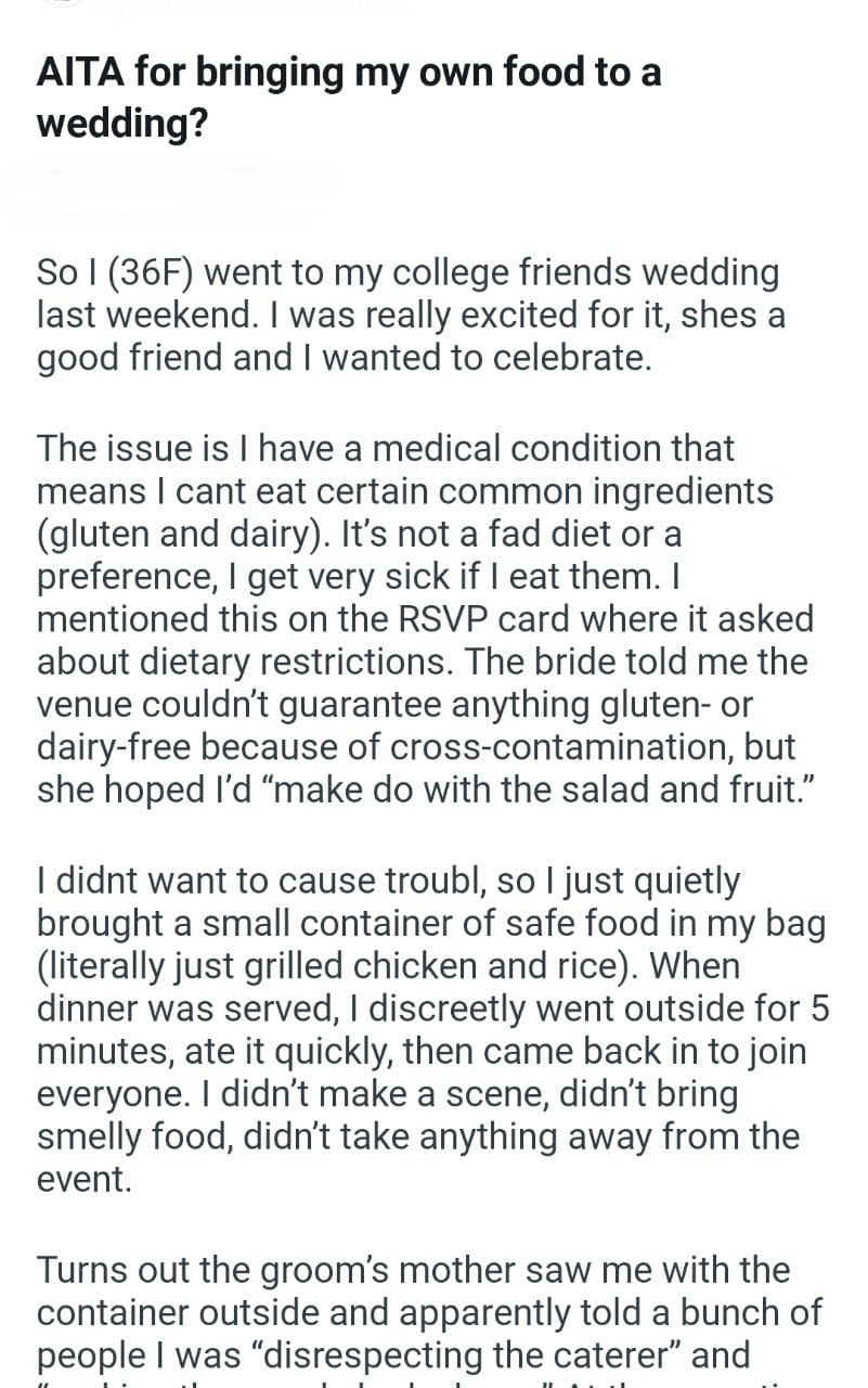 AITAH for babysit my cousins Related Posts AITA for bringing my own food AITA for wanting to move abroad my puppy my bf bought teenager parents want to settle privately remake a gift for my friend she keeps wishing our kids had my features WIBTA if I don’t tell my dad my husband and MIL out for being too heavy a sleeper he’ll have to explain to why to her my step-sister borrow my wedding dress I refused because I have two small children. AITAH? what he did to me during my pregnancy I made my kids friend boarding the plane