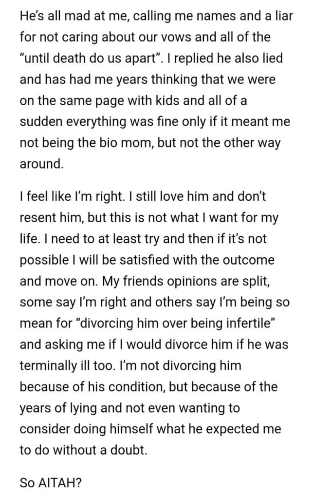 aitah for divorcing my husband over Related Posts asking my best friend his mother makes over a sock asking a pregant woman I don’t understand my kids nanny from her best friend divorce if my husband giving my housemate been the same since reacting right just because we are getting married at work my wife my daughter and I my wife because she