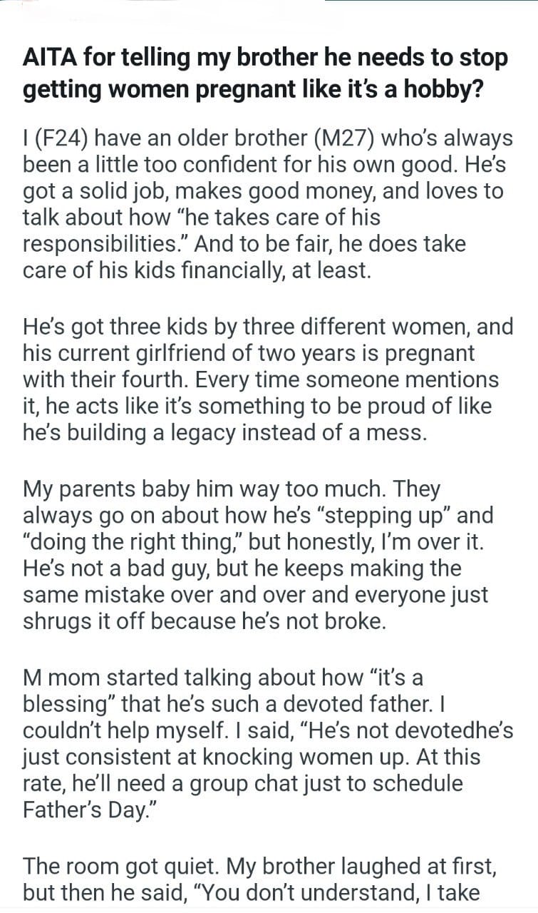 AITAH for my parents after what they did to my brother Related Posts my daughter’s door tipper’s pizza for telling my brother boyfriend’s coworkers and boss for ordering homeschool my children while feeding baby what he just did with my mom my son move in AITAH for wanting a divorce after my soon to be my girlfriend and her son my dad’s girlfriendĀ My son’s friend’s parents