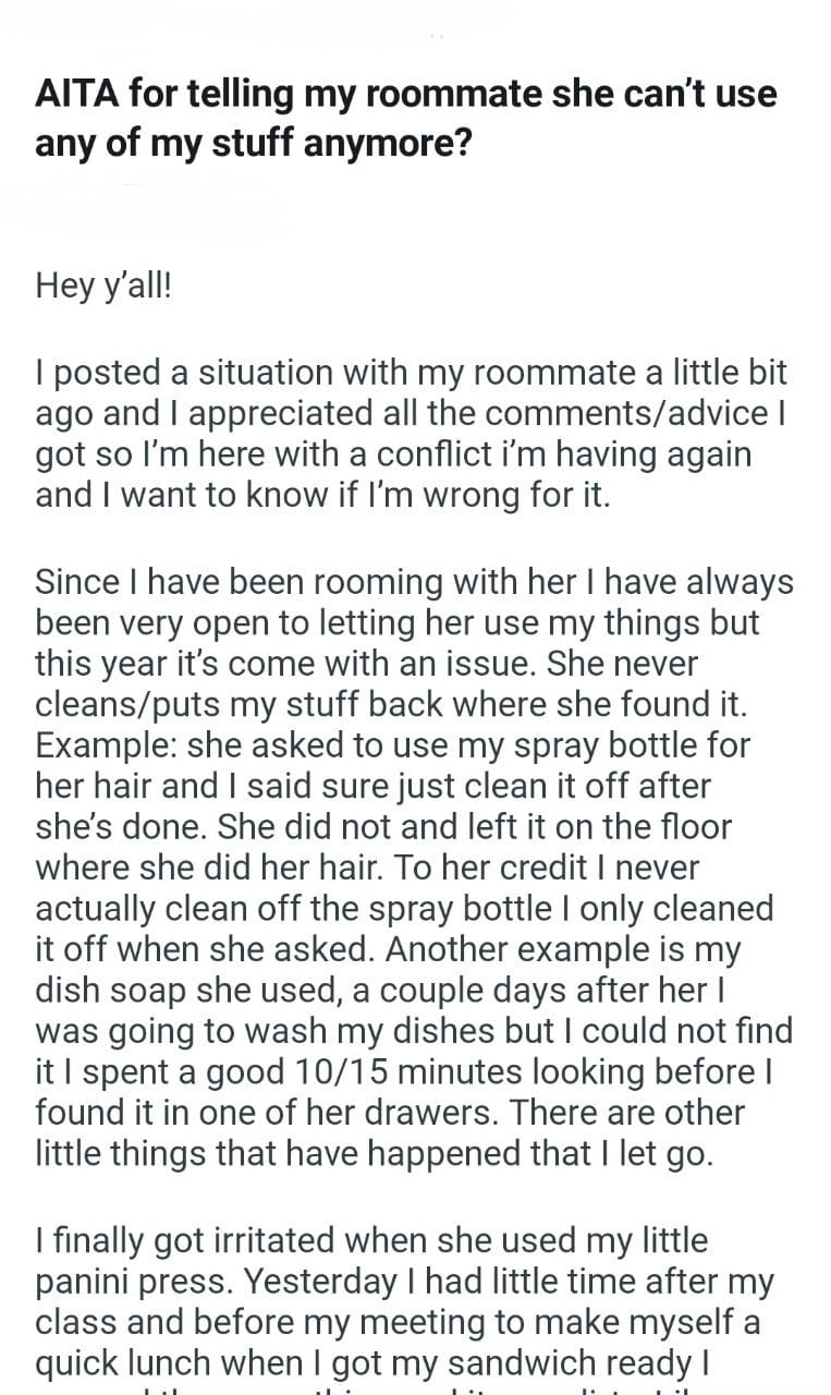 AITAH for not allowing my ex fiancée to continue living with me Related Posts AITA for telling my roommate AITAH for telling my wife why my gf for having AITA for saying my wife my childcare job I told my friend why for how I handled AITAH for asking MIL AITA for wanting to divorce my husband for responding to a SIL’s my husbands birthday weekend my fiancée tattoo with my sister my(m29) girl friend (f28) my husband’s newly