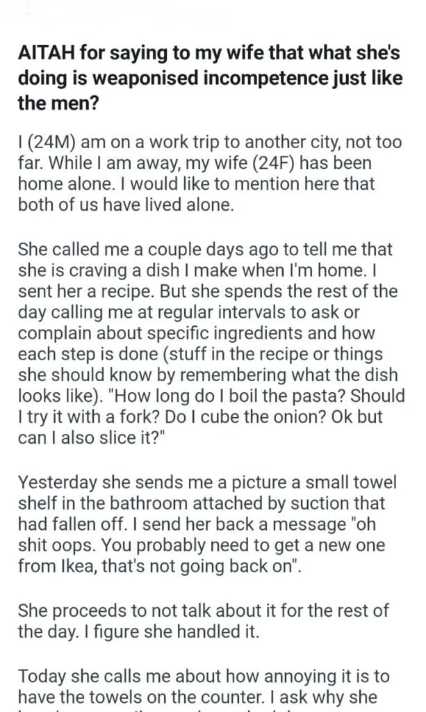 AITAH for saying to my wife that what she’s doing Related Posts my girlfriend meals my sister’s wedding my husband by my side daycare for my son putting peanuts completely changing my kids life AITA for telling my dad that if his wife AITA for asking my husband to take my office because my partner AITA for telling my mom with my boyfriend my husband lied my coworker boyfriend flight for my girlfriend my identical twin sister