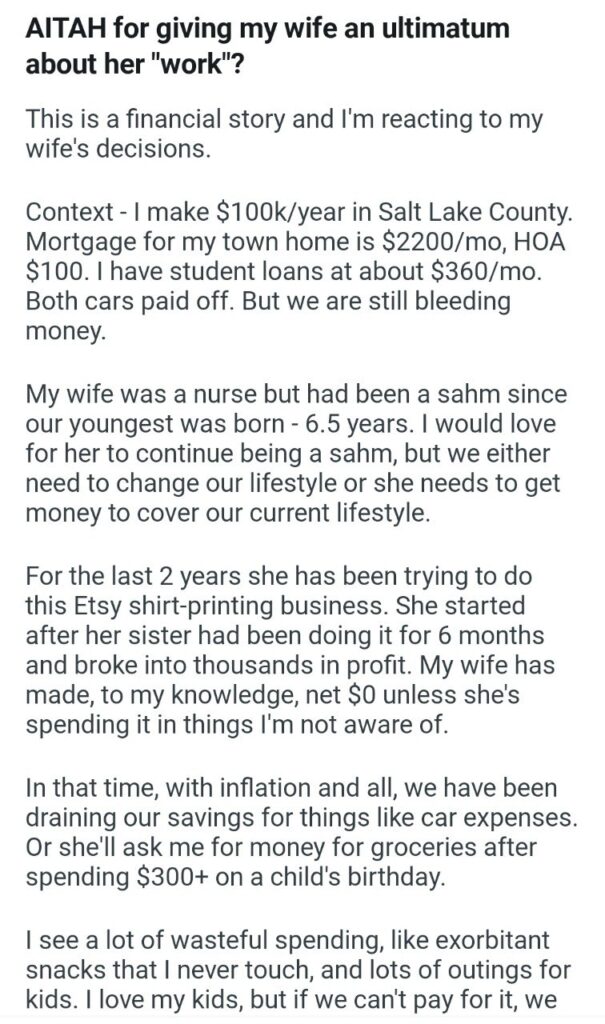 an ultimatum about her “work” Related Posts AITAH for telling my BIL that helping I didn’t AITA for demanding my colleagues my GF’s phone AITAH for telling my SIL daughter lives for free with us AITA for changing the wedding venue my fiancé her parent can’t live with us my husband’s friend to stay in our house picking her up at the airport at 3AM my bf over Mariokart what my neighbor did my Dad and his wife after they refused my girlfriends wigs my GF did and asking for space