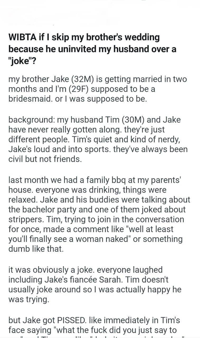 as our home Related Posts over a “joke” my (24M) husband for daycare is easily worth My best friend wedding my friend along Me or my wife during my birthday dinner support I think the new tires for properly father deserves at the hospital a month before Christmas my mom’s holiday request my sister’s engagement party