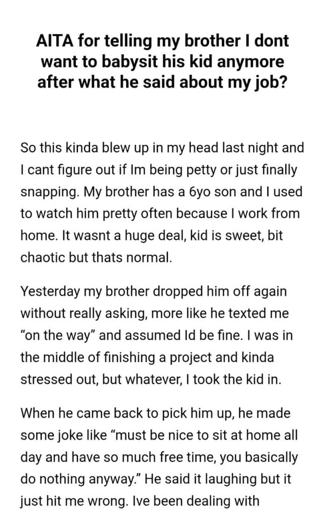 babysit his kid Related Posts with my family on Thanksgiving reminding my boyfriend after “joking” my client’s wife’s for preparing work dinner what my son/her stepson after a date for telling my stepkids live with anyone my wife eating he didn’t do anything I am unsure AITA- My wife came home my fiance for Thanksgiving