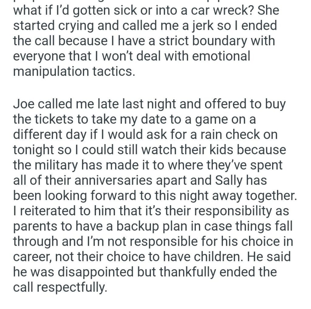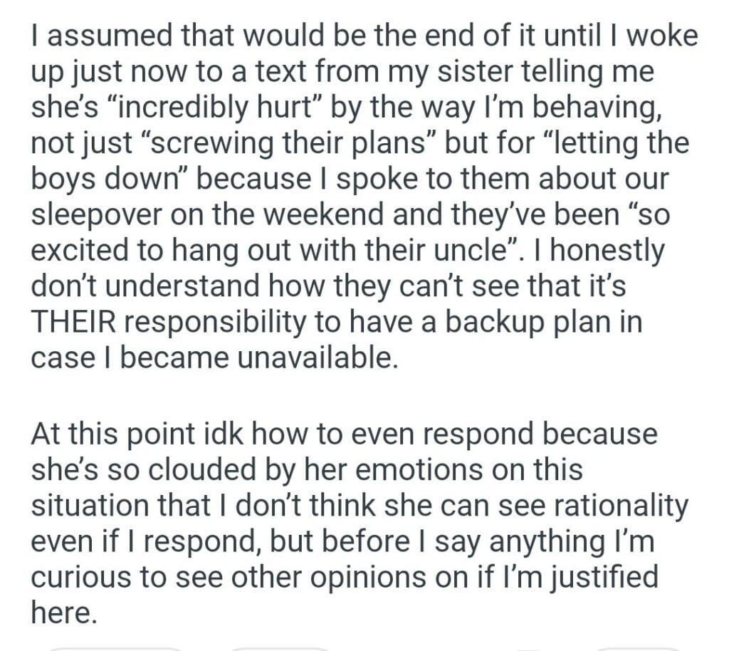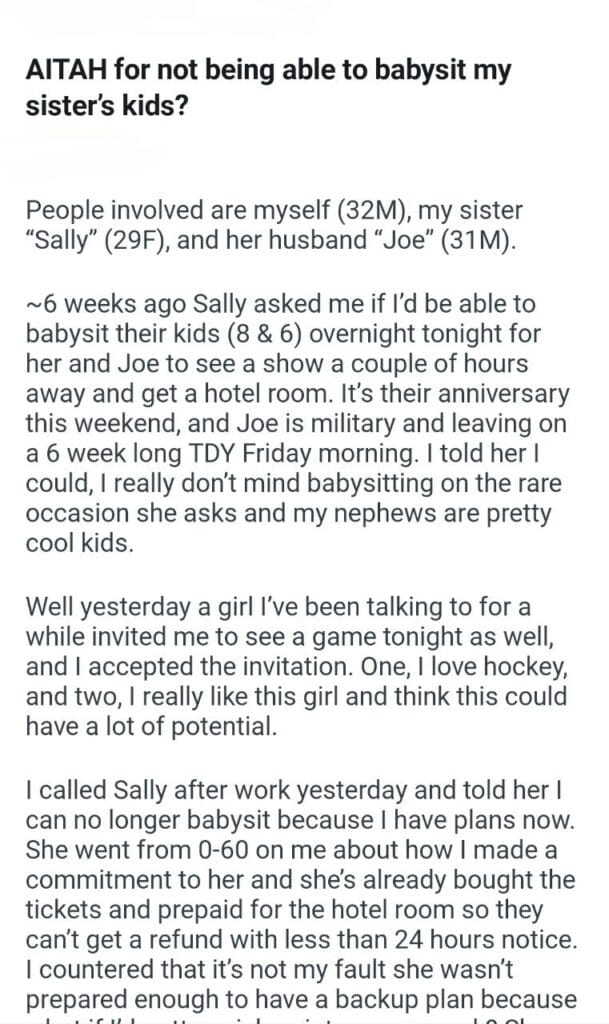 babysit my sister’s kids Related Posts for my MIL the wedding dress code my “perfect” husband my friend replace too much my wife that our marriage back from my boyfriend for themselves? last night and the owner my true feelings after I called being the reason what’s best for me telling my son that my gf she should have