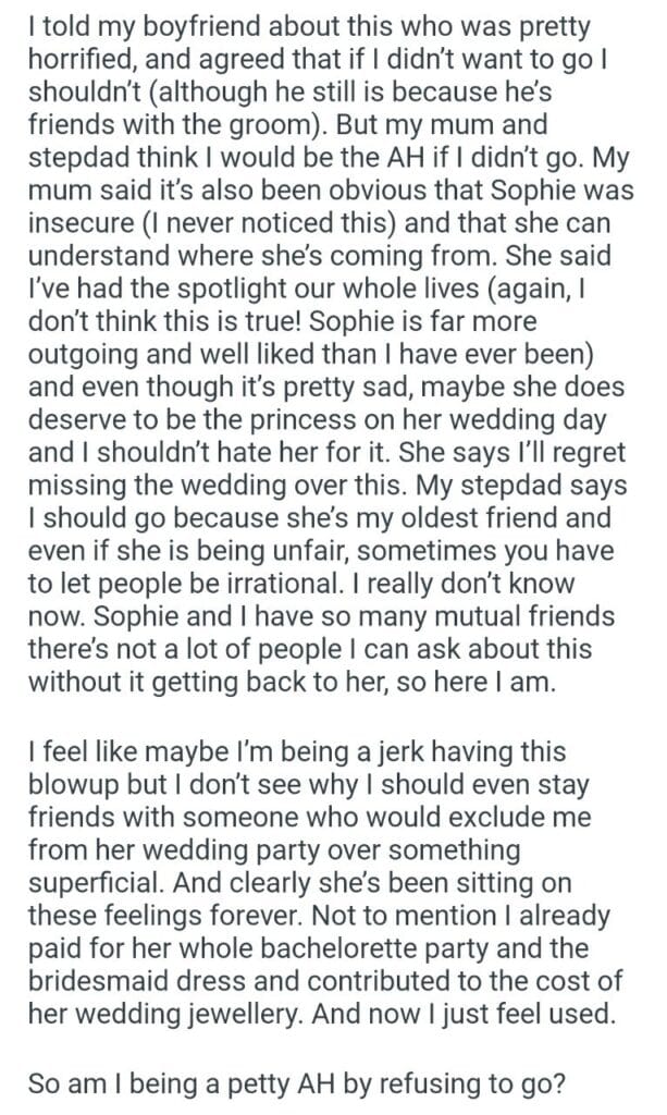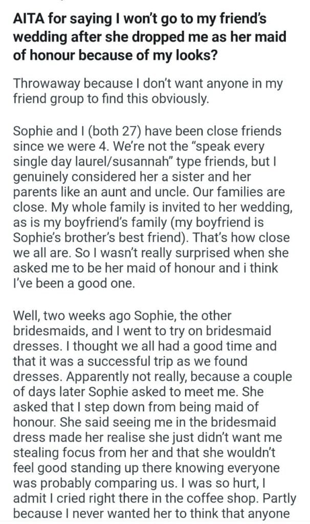 because of my looks Related Posts calling my sil when she gets married my car for work her best friend’s husband below my apartment my boyfriend after he chose me my SIL’s Christmas gift list how they treated me at my husband Christmas for my kids telling my boyfriend Im thinking share my inheritance with the siblings sons bail choosing to get married secret from my family