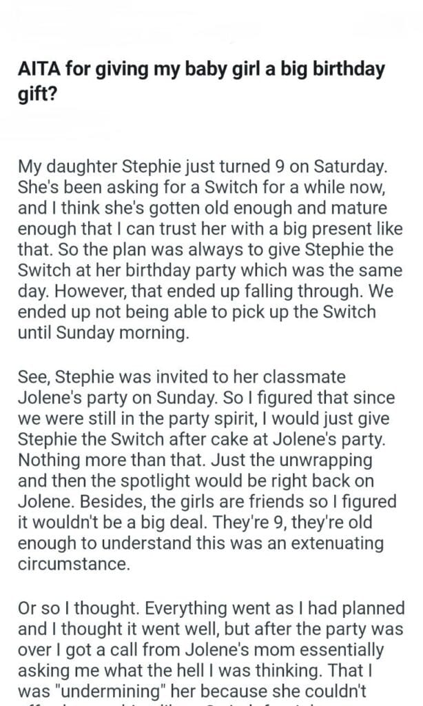 big birthday gift Related Posts he can give his kid’s mother a ride AITA for taking my boyfriend to a birthday dinner my super friend’s bf? right before he moves across the country AITA for saying yes to a proposal our family weekend away my ex-girlfriend’s dog my best friend and her kids thinks she deserves the insurance payout WIBTA for uninviting my brother my brother’s proposal at my baby shower AITA for telling my husband my friend mom acts moving to another country long time ago before marriage