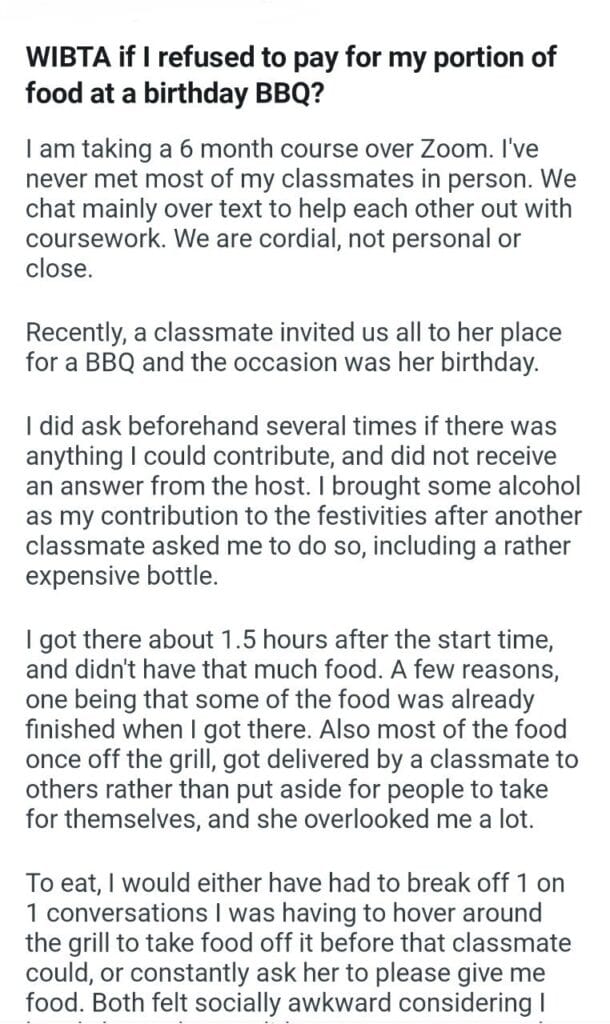 birthday bbq Related Posts a month before Christmas my mom’s holiday request my sister’s engagement party leaving my bf My neighbor that the reason mashed potatoes five years later overnight visitors my son (18) my (29m) online my inlaws’ christmas my son’s mom cabana her behaviour my older brother