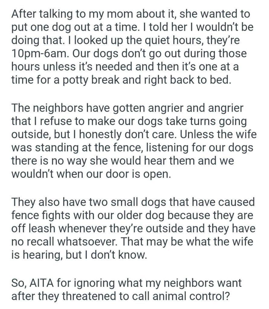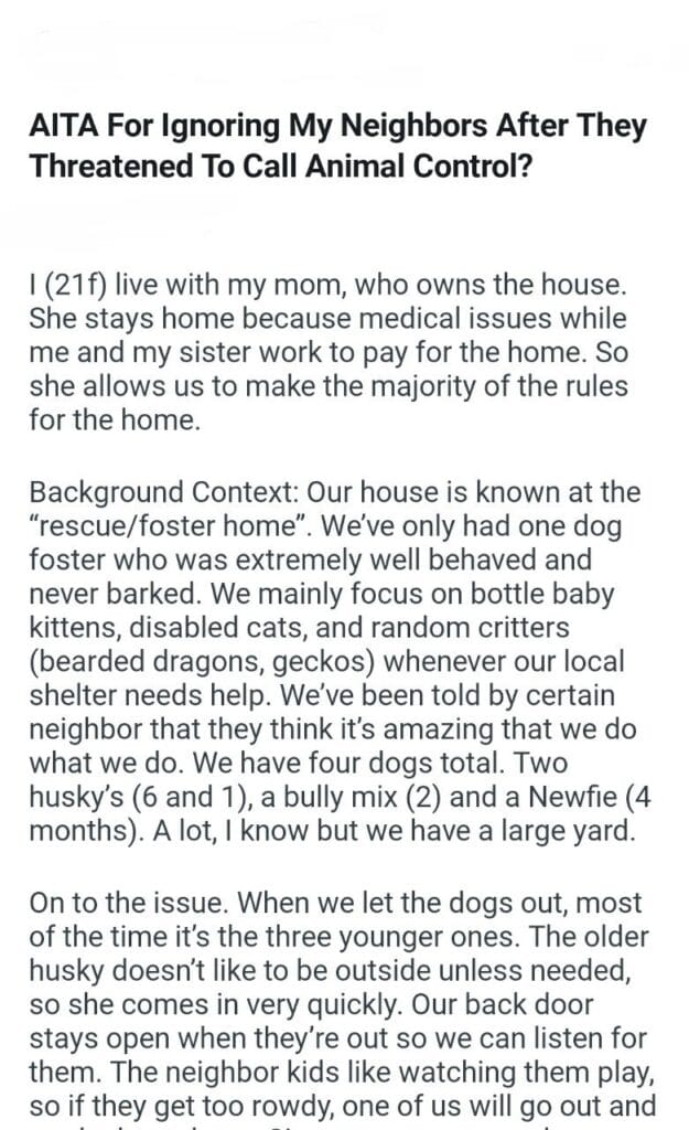 Call Animal Control Related Posts my cousin for a “prank” dog for my Daughter reporting a teacher my property for not speaking my bathroom sister of my father’s not judgement she doesn’t want to move in my neighbors and telling them to get divorced good friend AITA for telling my neighbor without telling AIO my boyfriend lunch at work the same elevator