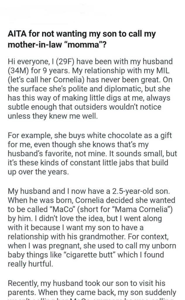 call my mother-in-law Related Posts talk about his family my sister to CPS grand gesture Should I tell him my group project that’s 20 years my stepson AITA for telling my mom she telling everyone my Daughter allowing my Mom his accent for wanting a test meal at a restaurant my friend in front my bachelorette party