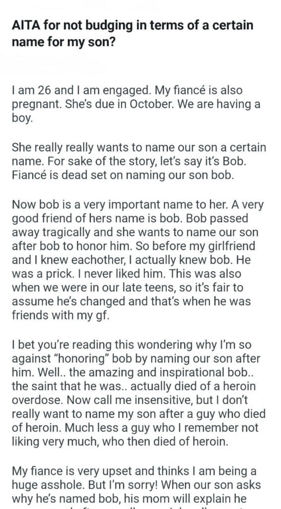 certain name Related Posts my dad’s wife my SIL a bridesmaid sign-language personal sized pizza my half-siblings my bf’s mom asked if she was trying for My bf (27M) two years (31M) isn’t mine “good food” mentioning my in laws my stepdaughter to share My boyfriend