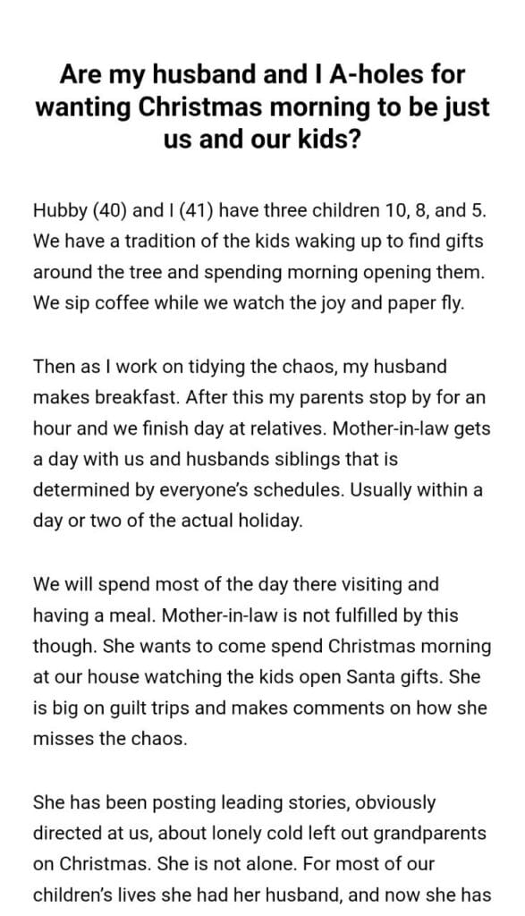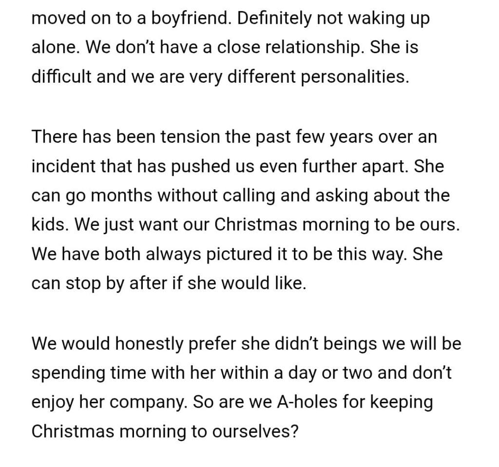 Christmas morning Related Posts into our marriage over a “joke” my (24M) husband for daycare is easily worth as our home My best friend wedding my friend along Me or my wife during my birthday dinner support I think the new tires for properly father deserves at the hospital a month before Christmas