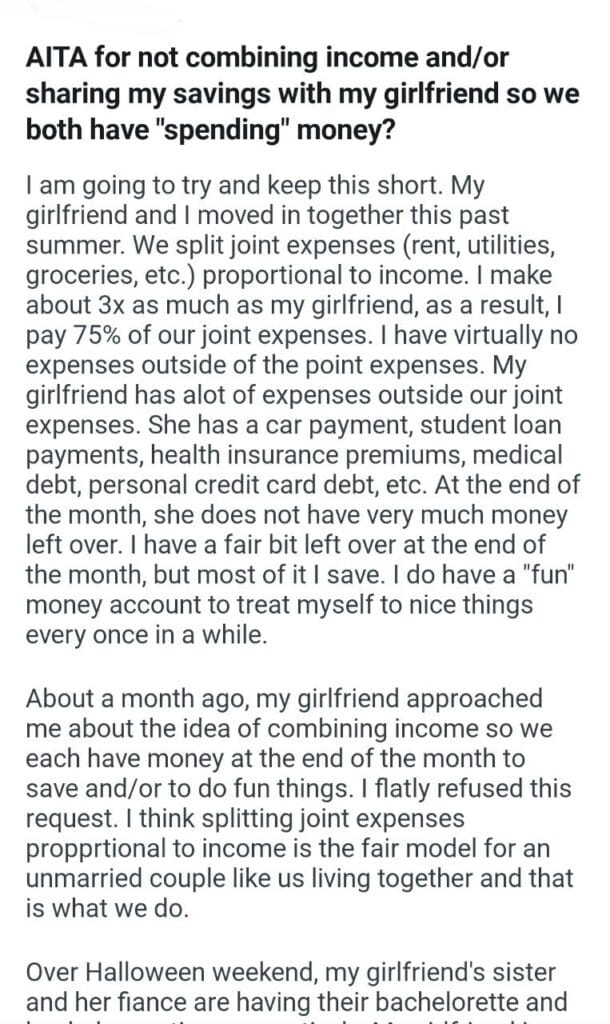 combining income ***Update Related Posts my friends kids her looks tipping 83 my GF (29F) of 5 years keeping 700 my son that his cat’s my dad getting remarried some sportswear my dad’s house and telling him for not telling my cousin my future salary the office Christmas decorations my in laws name having kids