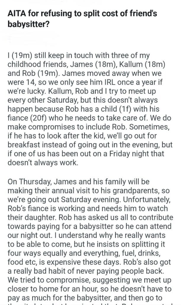 cost of friend’s babysitter Related Posts AITAH for telling my BIL that helping I didn’t AITA for demanding my colleagues my GF’s phone AITAH for telling my SIL daughter lives for free with us AITA for changing the wedding venue my fiancé her parent can’t live with us my husband’s friend to stay in our house picking her up at the airport at 3AM my bf over Mariokart what my neighbor did my Dad and his wife after they refused my girlfriends wigs my GF did and asking for space
