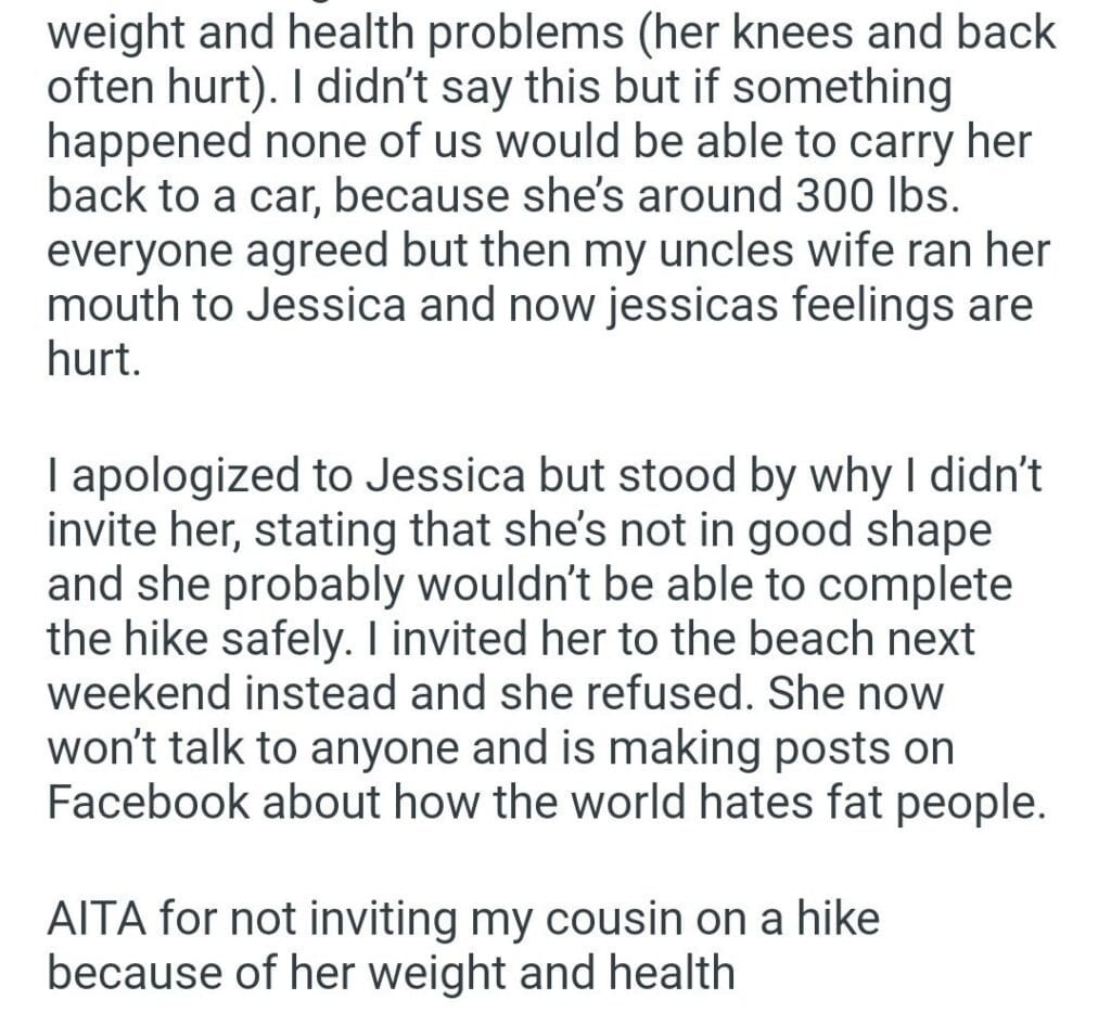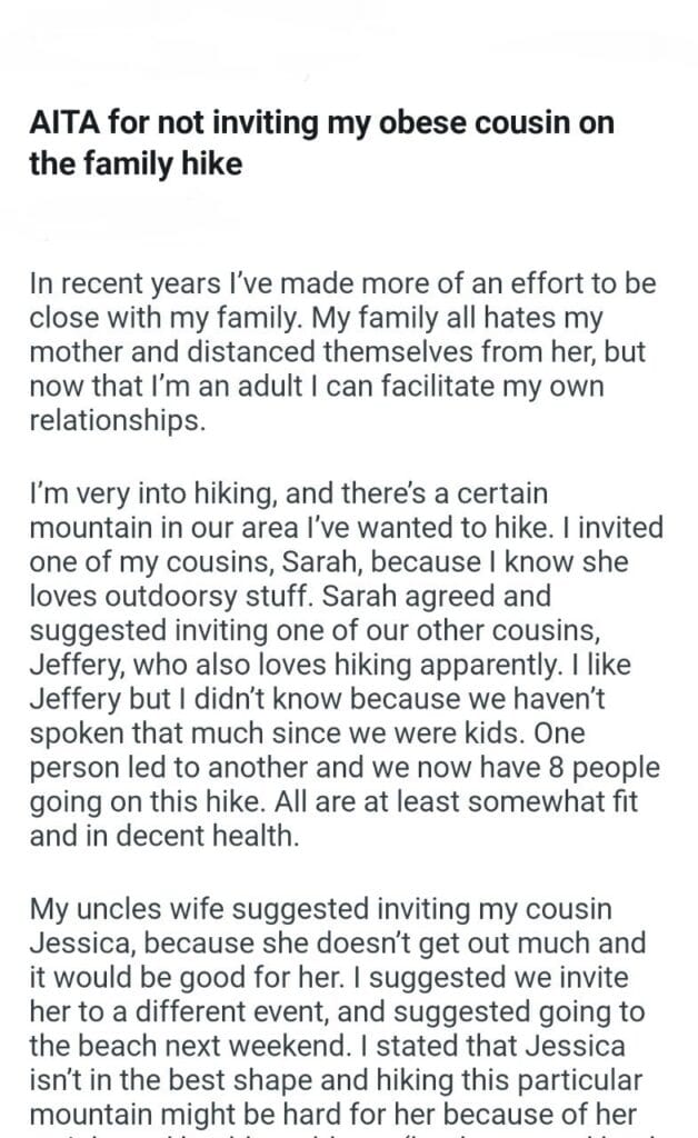 cousin on the family hike Related Posts my mom’s boyfriend and his daughter my MIL the water my baby middle name 10 days before the wedding Mil’s at my wedding AITA: Named my son my step-son’s college fund on a hike the concert ticket I bought my friend AITA for telling my future sister in law Thanksgiving Halloween or Christmas this year for getting a dog my workout routine Boyfriend doesn’t want to propose My (24F) BF (27M) booked our tickets