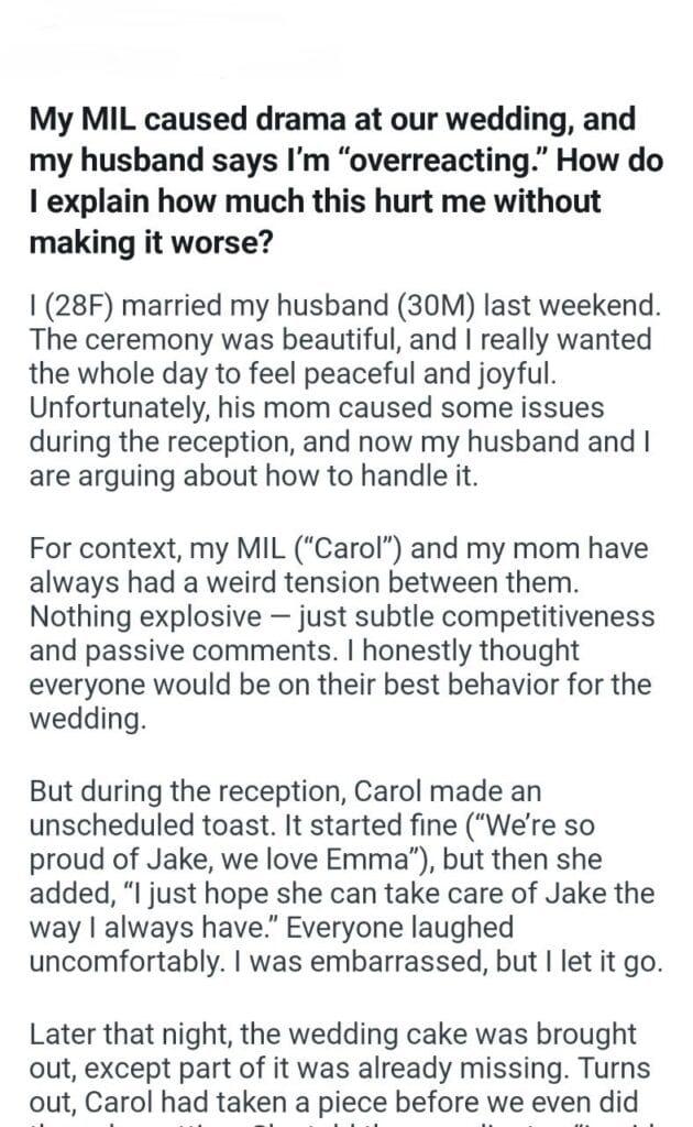 drama at our wedding Related Posts resulting in their my boyfriend’s proposal because with my family on Thanksgiving babysit his kid reminding my boyfriend after “joking” my client’s wife’s for preparing work dinner what my son/her stepson after a date for telling my stepkids live with anyone my wife eating he didn’t do anything