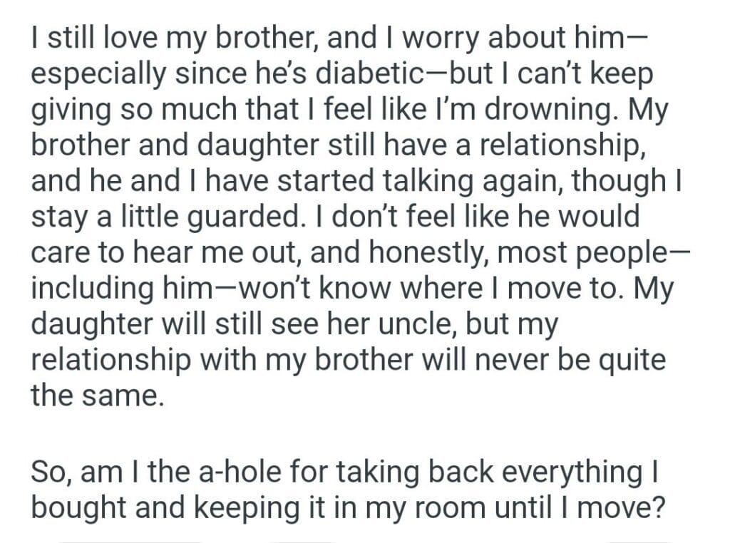 everything I bought Related Posts my husband left the office fridge the ladder enjoying the perk my GF’s contact a wedding ring our divorce Should I leave her radio station asking my aunt His words brother thinks his uncle by? birthday cake for my daughter’s friend be the “mother