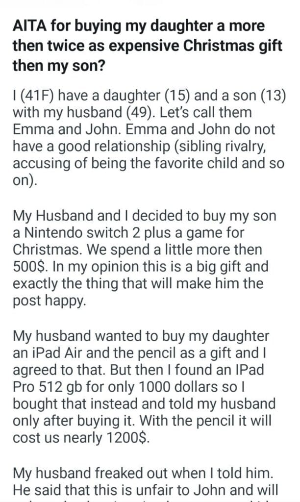 expensive Christmas gift Related Posts her own gift tags cousin deserved whole chicken off work my restaurant my brother and his wife my husband 34M husband to retire my (37f) husband from Christmas (again) seeing my child my sons fathers child 7th grade My boyfriend’s mom gave telling my brother’s wife