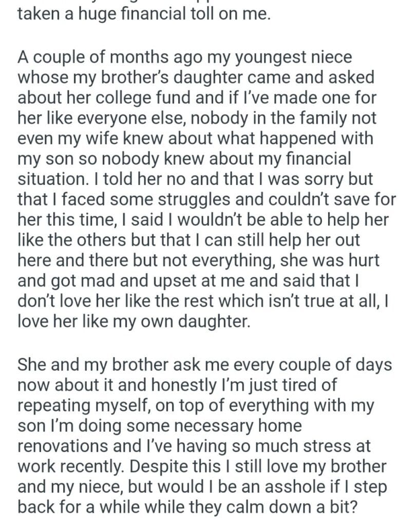 for all my nephew and nieces Related Posts my ex-wife’s child ex showed up my fiancé’s best man leave my fiancee my 4 year old my friends kids combining income her looks tipping 83 my GF (29F) of 5 years keeping 700 my son that his cat’s my dad getting remarried some sportswear