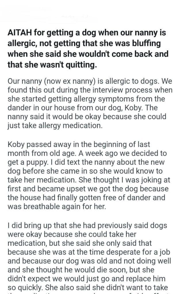 for getting a dog Related Posts AITA for telling my future sister in law Thanksgiving Halloween or Christmas this year my workout routine Boyfriend doesn’t want to proposeĀ My (24F) BF (27M) booked our tickets trip because my friend my boyfriend (34M) he can give his kid’s mother a ride AITA for taking my boyfriend to a birthday dinnerĀ my super friend’s bf? big birthday gift right before he moves across the country AITA for saying yes to a proposalĀ our family weekend away my ex-girlfriend’s dog