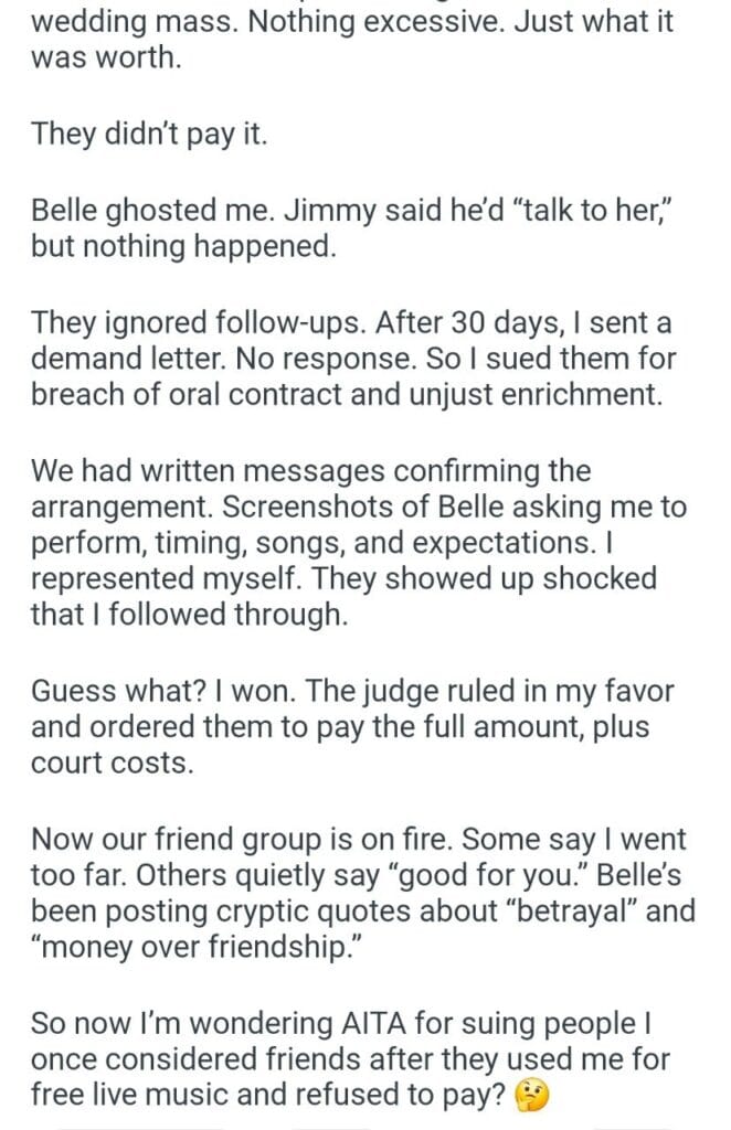 for suing my friends Related Posts my husband Boss says Letting Friends Stay Aiw for telling my friend for a few minutes my family’s house services rendered planning a trip to Europe washing my hands my son clothes my daughter’s door tipper’s pizza for telling my brother boyfriend’s coworkers and boss for ordering