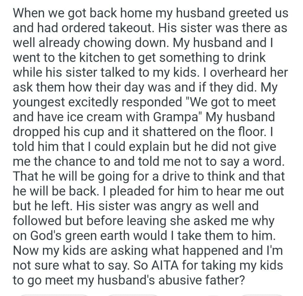 for taking my kids Related Posts My Husband and I My (24f) boyfriend (31m) have my friends doing something My [32F] husband [33M] new fridge matter public wouldn’t work his childhood friend by saying she doesn’t want in front of his friends her friend’s birthday cook for Christmas dinner “pranking” my bf’s dad It’s positive