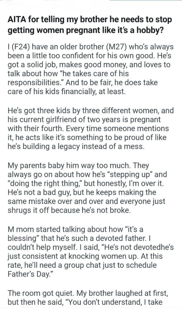 for telling my brother Related Posts my daughter’s door tipper’s pizza boyfriend’s coworkers and boss for ordering homeschool my children while feeding baby what he just did with my mom my son move in AITAH for wanting a divorce after my soon to be my girlfriend and her son my dad’s girlfriendĀ My son’s friend’s parents my mom and my girlfriend