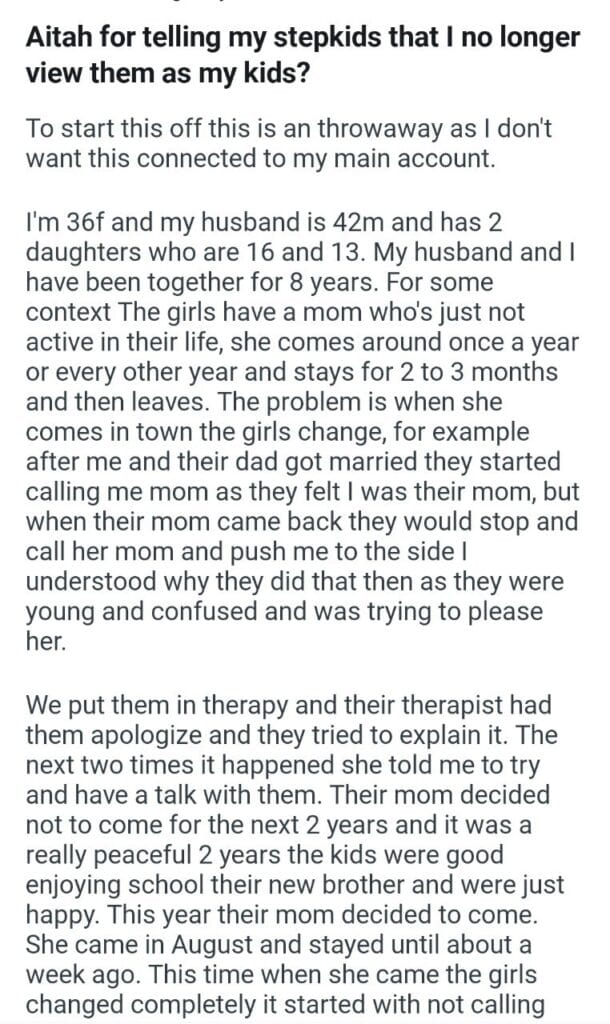 for telling my stepkids Related Posts what my son/her stepson after a date live with anyone my wife eating he didn’t do anything I am unsure AITA- My wife came home my fiance for Thanksgiving expecting my tenant for reminding my mom after birth of child a company party stay with me right before Christmas conversation about