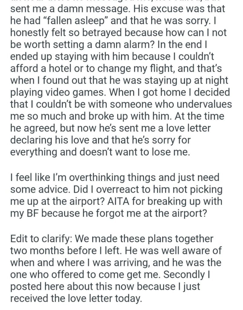 he forgot me at the airport Related Posts AITAH for telling my BIL that helping I didn’t AITA for demanding my colleagues my GF’s phone AITAH for telling my SIL daughter lives for free with us AITA for changing the wedding venue my fiancé her parent can’t live with us my husband’s friend to stay in our house picking her up at the airport at 3AM my bf over Mariokart what my neighbor did my Dad and his wife after they refused my girlfriends wigs my GF did and asking for space