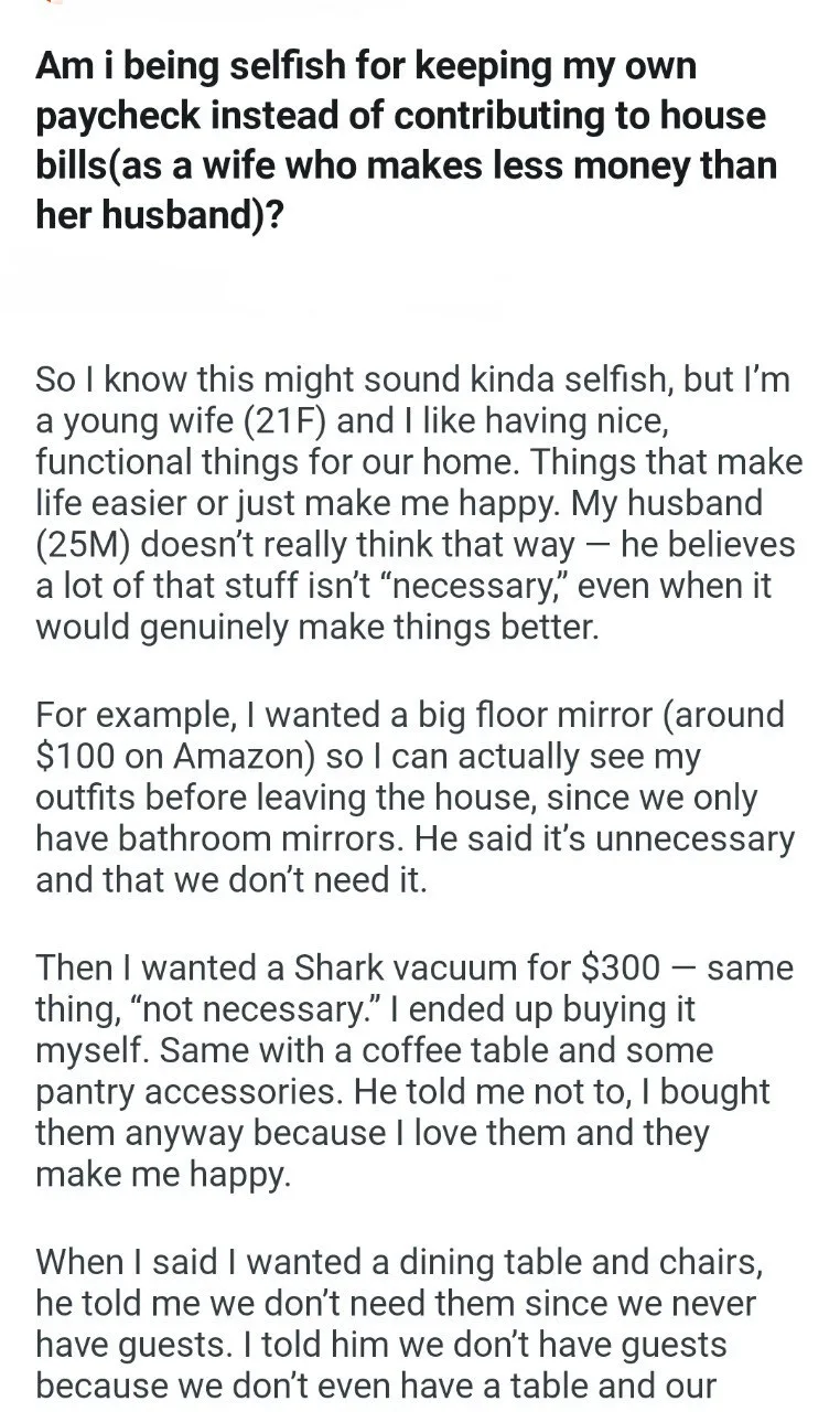 her behaviour Related Posts my inlaws’ christmas my son’s mom cabana my older brother Comfort Person her and her husband visit without telling them the basement moving my car to house bills to our baby our family together my 4 day old baby parking pass my bonus
