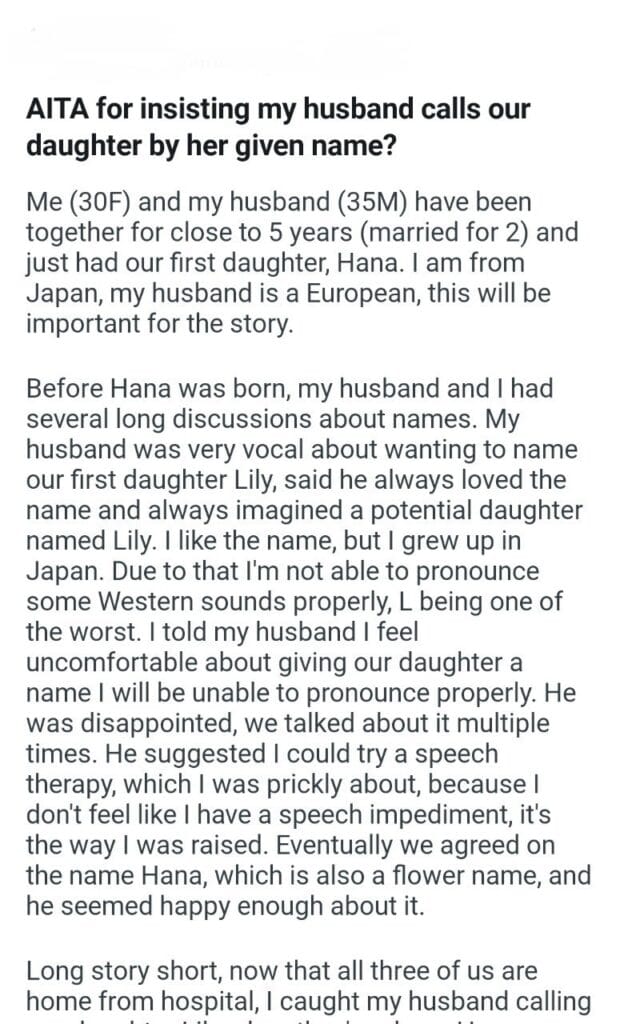 her given name Related Posts my dog’s puppies’ vet bills a child with my girlfriend my friend stay in my second property my parents marriage by finding my bio father Because I’m the woman AITAH for telling my BIL that helping I didn’t AITA for demanding my colleagues my GF’s phone AITAH for telling my SIL daughter lives for free with us AITA for changing the wedding venue my fiancé her parent can’t live with us my husband’s friend to stay in our house picking her up at the airport at 3AM