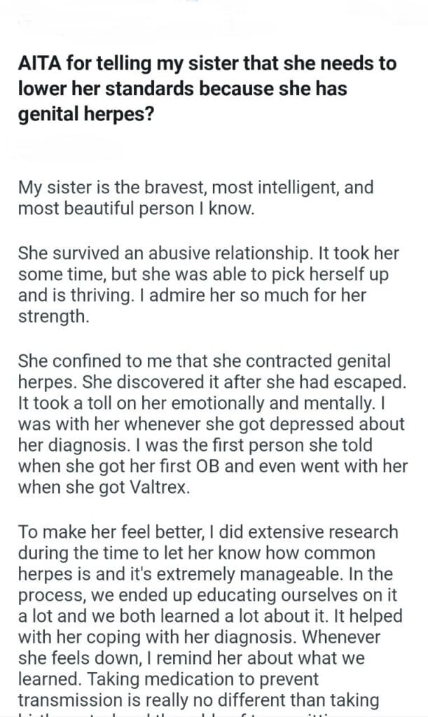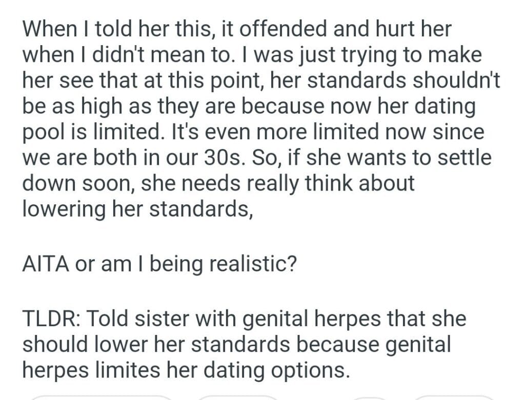 her standards Related Posts AITA for telling my sister in law AITA that I asked (F32) is back stepdaughter going for letting my daughter WIBTA for divorcing my husband my MIL up my mom’s room my friends cats covering for my coworker my half sibling’s mom my son’s stepkids my pregnant fiancee my boyfriend does with me walk the dog