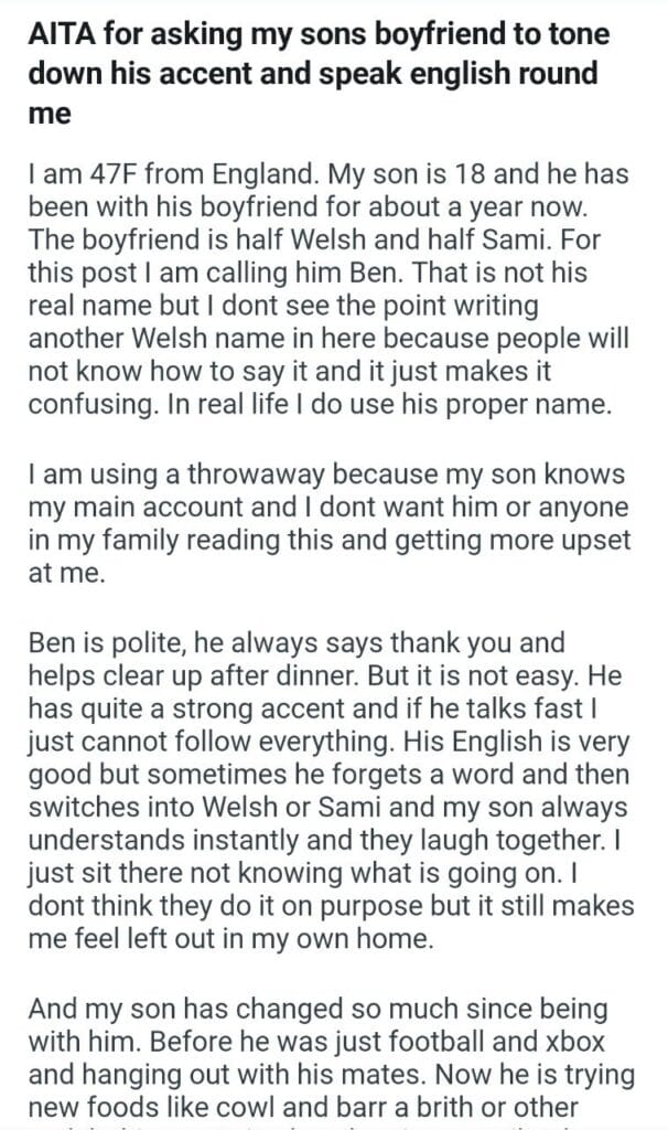his accent Related Posts telling everyone my Daughter allowing my Mom for wanting a test meal at a restaurant my friend in front my bachelorette party quitting” my marriage AITA for telling my mom my gf job for apparently being my dads wedding the “family-friendly” wedding my husband was home her husband isn’t my mom’s friend