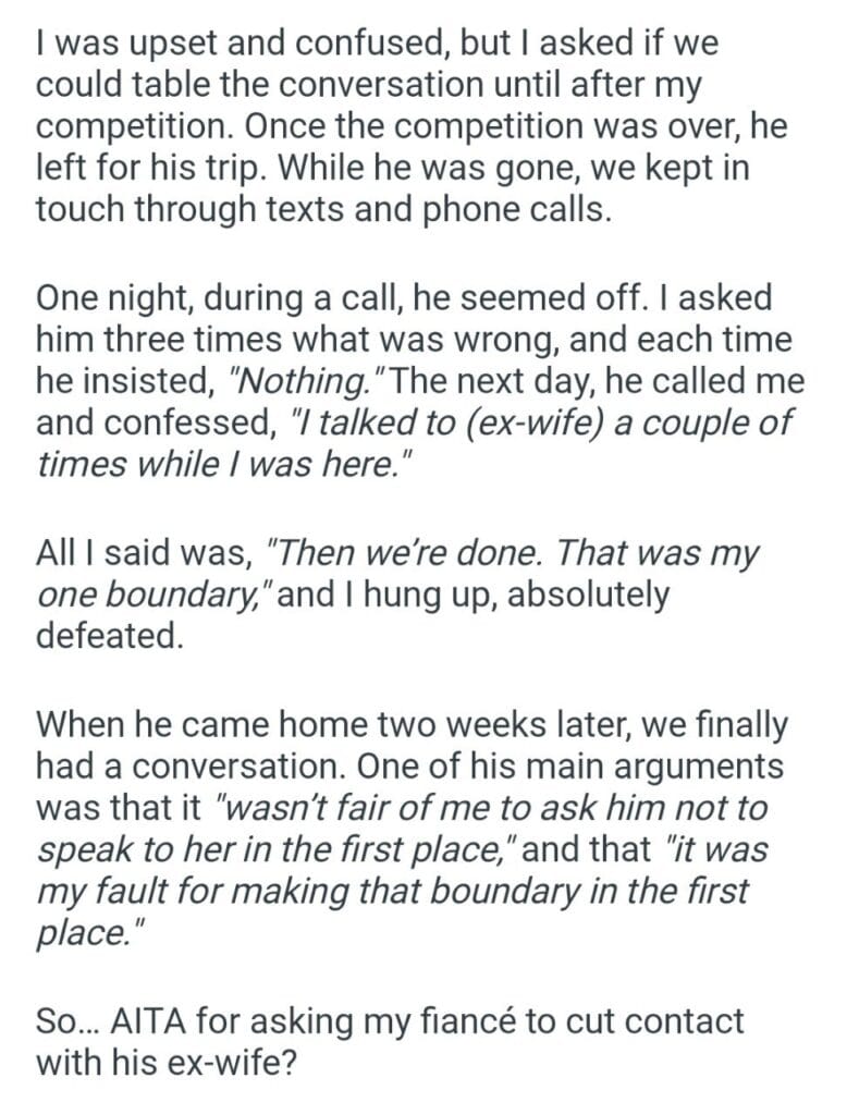 his ex wife Related Posts my old neighboor my chores babysit my husbands kids go to Christmas Dinner my boyfriend’s family Thanksgiving My husband (36M) my best friend of 20 years another kid My Dad’s Christmas his wedding speech her and her children my sister and her husband my purpose my ex-wife again female “friend” kids